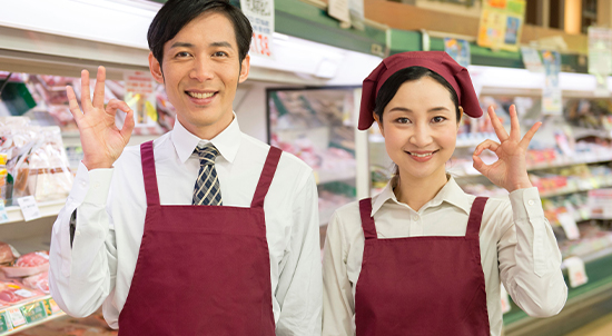 | 募集職種 | フロアスタッフ,レジスタッフ,惣菜スタッフ, 青果スタッフ,鮮魚スタッフ,事務スタッフ |